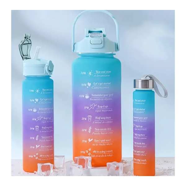 - 3Pcs Motivational Water Bottle with Straw & Handle
